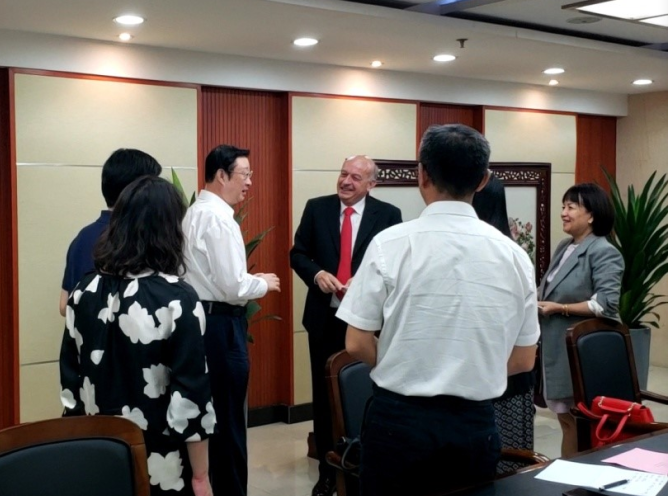 李萬平書記和周勇代區長對法國威立雅集團Luc ZELLER先生一行表示熱烈歡迎,周勇代區長特別說到這是其上任后首次接待的外國公司朋友。李蓓副區長向威立雅客人介紹了六合區近年來的經濟、社會發展狀況和今年抗擊疫情、招商引資取得的突出成果。
