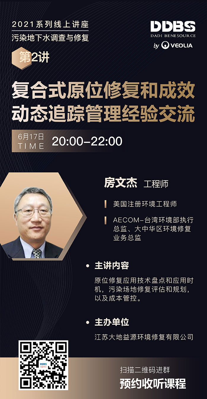 2021DDBS在線系列講座,由顧愛良博士首講《地下水修復技術現狀、挑戰及發展動態》課程,從行業角度對土壤地下水污染修復技術的起源、發展和未來走勢幫助大家對行業發展動態做了宏觀了解。