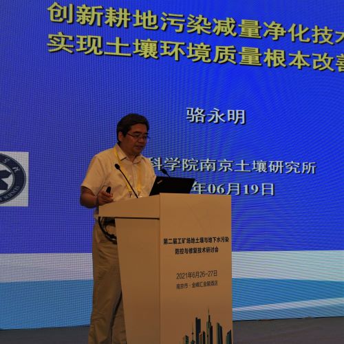 6月26至27日,第二屆工礦場地土壤與地下水污染防控與修復技術研討會在南京成功舉辦。280多位行業知名專家、學者、企業代表及高校、院所的學生齊聚一堂,研討工礦場地土壤及地下水污染防控與修復前沿技術,推介展示成果、深入探討交流、開展互利合作、共謀行業發展,1600多位場外觀眾在線參加了會議。本屆研討會由中科院南京土壤所研究員、國家科學技術部重點研發計劃項目首席專家陳夢舫主持,中科院南京土壤所沈仁芳所長、生態環境部土壤與農業農村生態環境監管技術中心洪亞雄主任等領導致開幕辭,大地益源環境修復有限公司辜曉平總經理代表企業上臺致辭。
