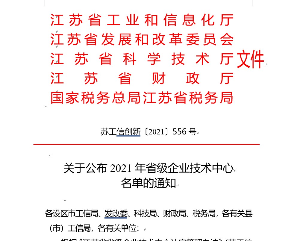 近日,江蘇省工業(yè)和信息化廳正式對外發(fā)布《關(guān)于公布2021年省級企業(yè)技術(shù)中心名單的通知》,大地益源被認(rèn)定為“2021年省級企業(yè)技術(shù)中心”。