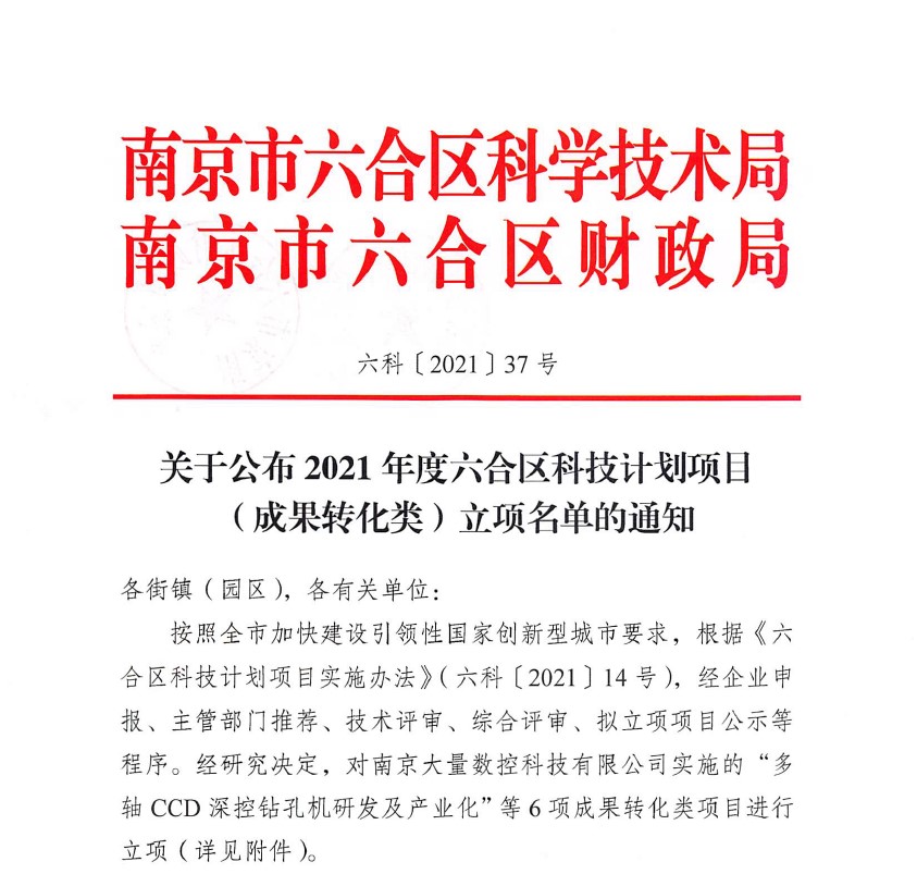 近日,六合區(qū)科技局與財政局聯(lián)合發(fā)文,對我司實施的“陰燃技術(shù)治理重度有機污染介質(zhì)工藝、裝備研究及產(chǎn)業(yè)化”項目進(jìn)行立項。