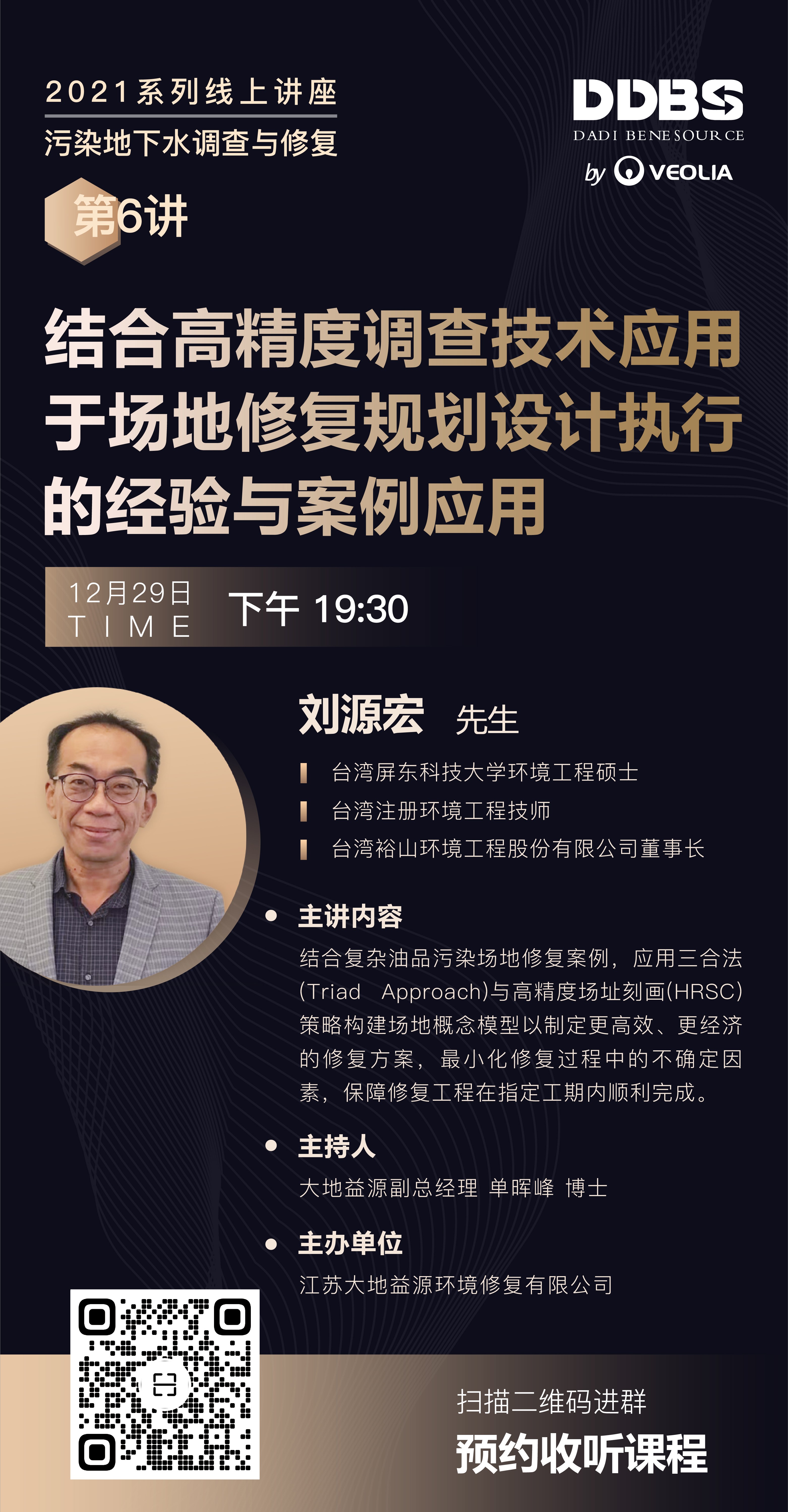 第5講,由車明道博士主講,圍繞多個含氯有機物污染場地地下水原位精確修復案例,探討精確修復觀念及各種高效能調查、修復評估技術的應用實效。我們現將講座視頻發布,供大家回顧。