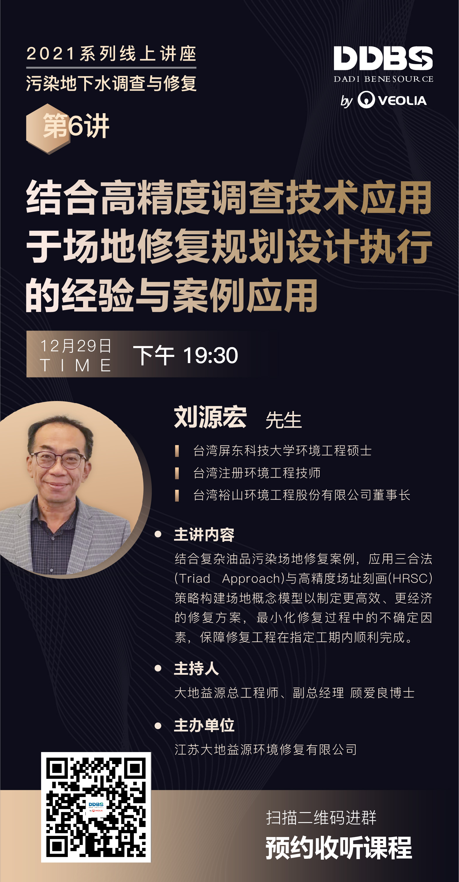12月29日晚19:30,2021DDBS在線系列講座第6講將于與大家見(jiàn)面。這是本年度系列講座的最后一期,第6講嘉賓我們特別邀請(qǐng)到劉原宏先生,為大家?guī)?lái)《結(jié)合高精度調(diào)查技術(shù)應(yīng)用于場(chǎng)地修復(fù)規(guī)劃設(shè)計(jì)執(zhí)行的經(jīng)驗(yàn)與案例應(yīng)用》講座。