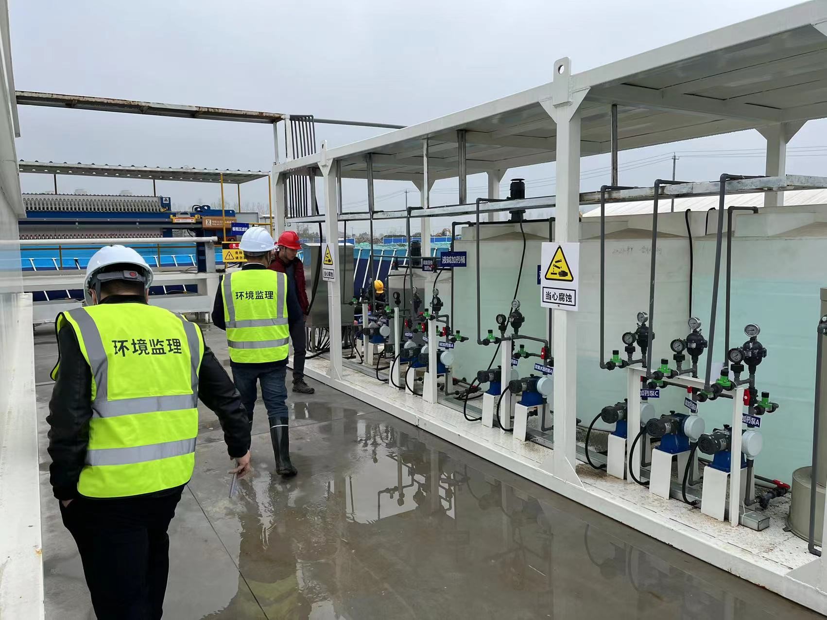 在聽取了整個(gè)施工現(xiàn)場(chǎng)的生產(chǎn)工藝及二次污染防控施工流程后,領(lǐng)導(dǎo)一行深入施工現(xiàn)場(chǎng)檢查施工作業(yè)情況,詳細(xì)查看了項(xiàng)目安全生產(chǎn)、二次污染防治等情況。對(duì)項(xiàng)目部水處理設(shè)備區(qū)、水處理在線監(jiān)測(cè)設(shè)備及廢水納管排放規(guī)范流程表示滿意并給予了肯定與贊許。要求項(xiàng)目部所有檢測(cè)設(shè)備運(yùn)行正常、指標(biāo)正常,切實(shí)做好開挖、處置等各個(gè)工段的二次污染防治,進(jìn)一步提升二次污染的防治能力。