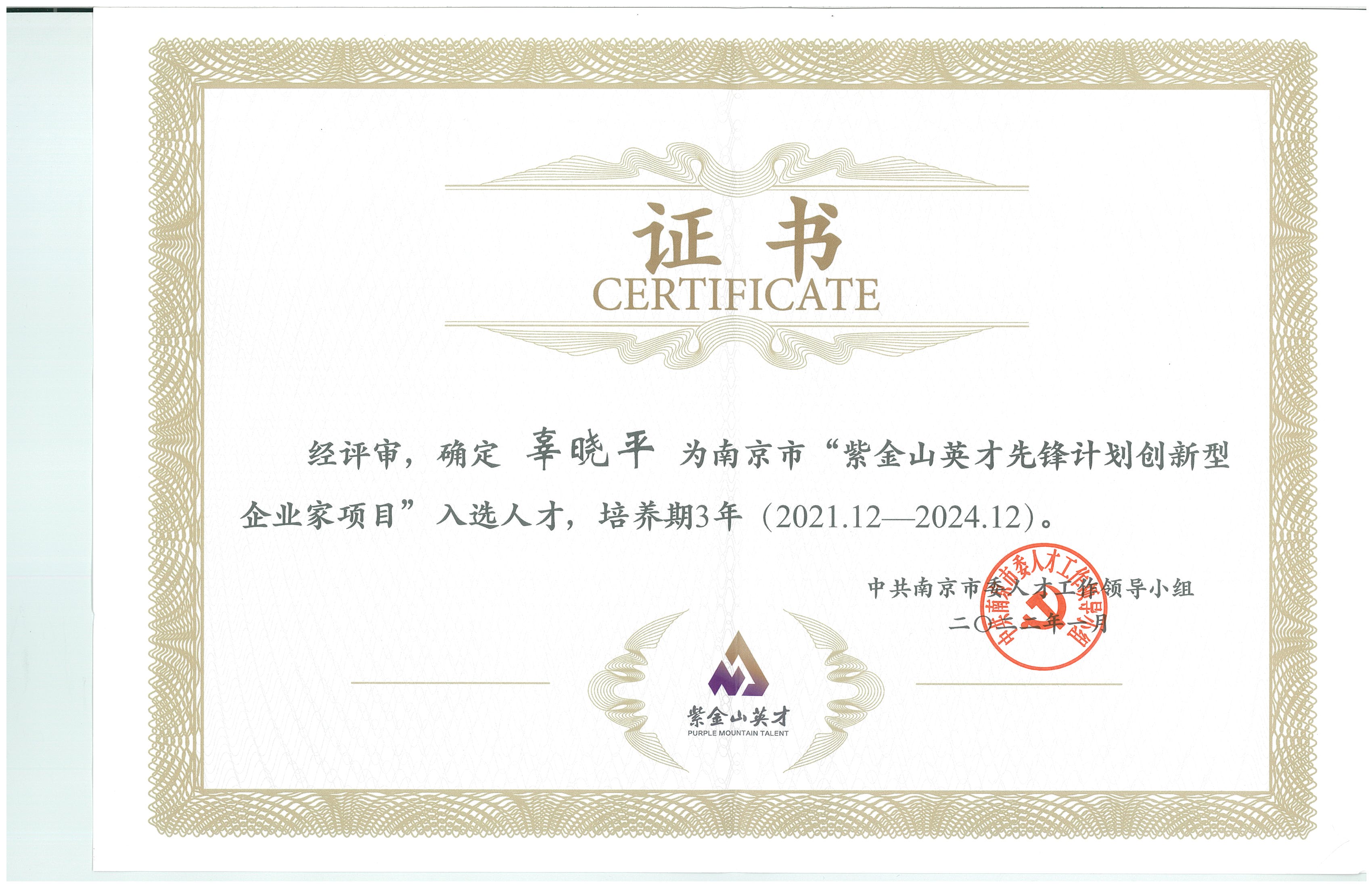 “紫金山英才計(jì)劃”,是在整合南京人才工程的基礎(chǔ)上,大力推進(jìn)人才體制機(jī)制改革和政策創(chuàng)新,著力打造品牌統(tǒng)一、銜接有序、運(yùn)作高效的人才支持體系。“紫金山英才先鋒計(jì)劃創(chuàng)新型企業(yè)家項(xiàng)目”入選名單由中共南京市委人才工作領(lǐng)導(dǎo)小組核準(zhǔn)頒布,成功入選該計(jì)劃是對(duì)企業(yè)創(chuàng)新能力和經(jīng)營(yíng)管理能力的肯定和鼓勵(lì)。項(xiàng)目中創(chuàng)新型企業(yè)家指創(chuàng)辦創(chuàng)新型企業(yè)、具備高成長(zhǎng)性和廣闊的市場(chǎng)前景、對(duì)產(chǎn)業(yè)發(fā)展起到引領(lǐng)作用的優(yōu)秀企業(yè)家。