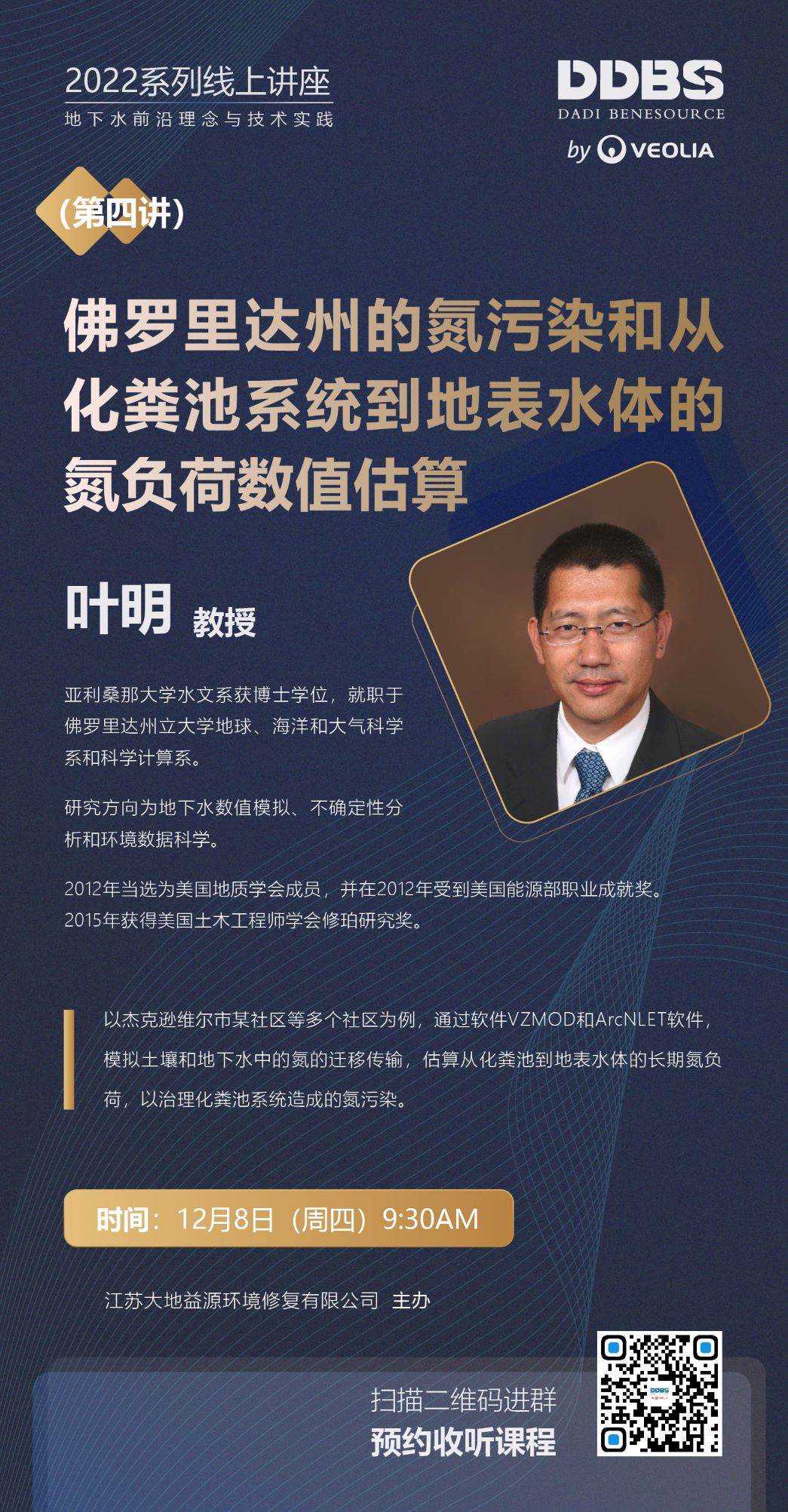 在國外,關于氮負荷數值的估算已經較為成熟,以佛羅里達州為例,使用現場污水處理和處置系統(又名化糞池系統)進行廢水處理是其地下水和地表水中氮源的來源之一。本期講座大地益源特邀請地下水模擬和地表水體氮負荷數值評估的專家葉明教授,以“佛羅里達州的氮污染和從化糞池系統到地表水體的氮負荷數值估算”為主題,詳細為大家介紹該地的氮負荷數值估算技術和軟件功能以及如何應用。