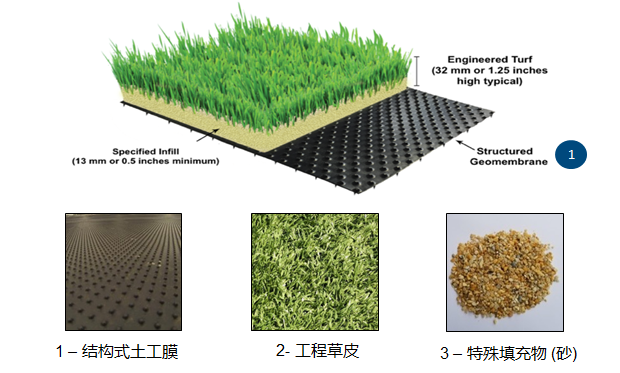 無土覆蓋技術解決了傳統土壤覆蓋中植被損壞和土壤侵蝕等問題的的長期挑戰。無土覆蓋技術采用結構式土工膜,加以工程草皮和特殊砂制填充物,取代傳統土壤覆蓋中的土壤層。該技術還可與太陽能發電系統技術相結合,具有受天氣和場地條件變化的影響較小,改善雨水徑流質量,提高巖土穩定性、施工進度快,環境影響小,與自然完美融合、維護簡單等優勢,在城市固體廢物填埋場、工業廢物填埋場和燃煤殘渣蓄水池和填埋場取得廣泛應用。