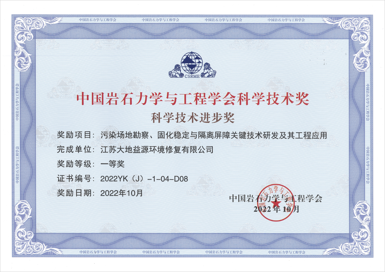 近日,中國巖石力學與工程學會發布了科學技術獎評選結果公示,我司在“污染場地勘察、固化穩定與隔離屏障關鍵技術研發及其工程應用”項目中,榮獲科學技術進步一等獎。“固化穩定化技術”是我司與東南大學聯合研發而...