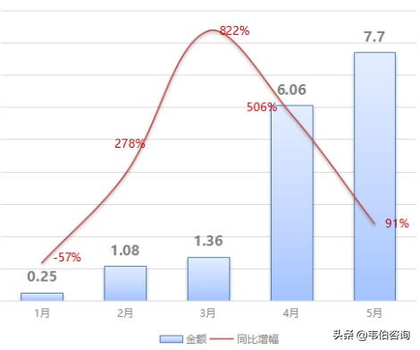 根據韋伯咨詢對招標網站數據的不完全統計,2020年1-5月,全國土壤修復訂單分別為0.25、1.08、1.36、6.06、7.7億元,當月同比增速分別為-57%、278%、822%、506%、91%。